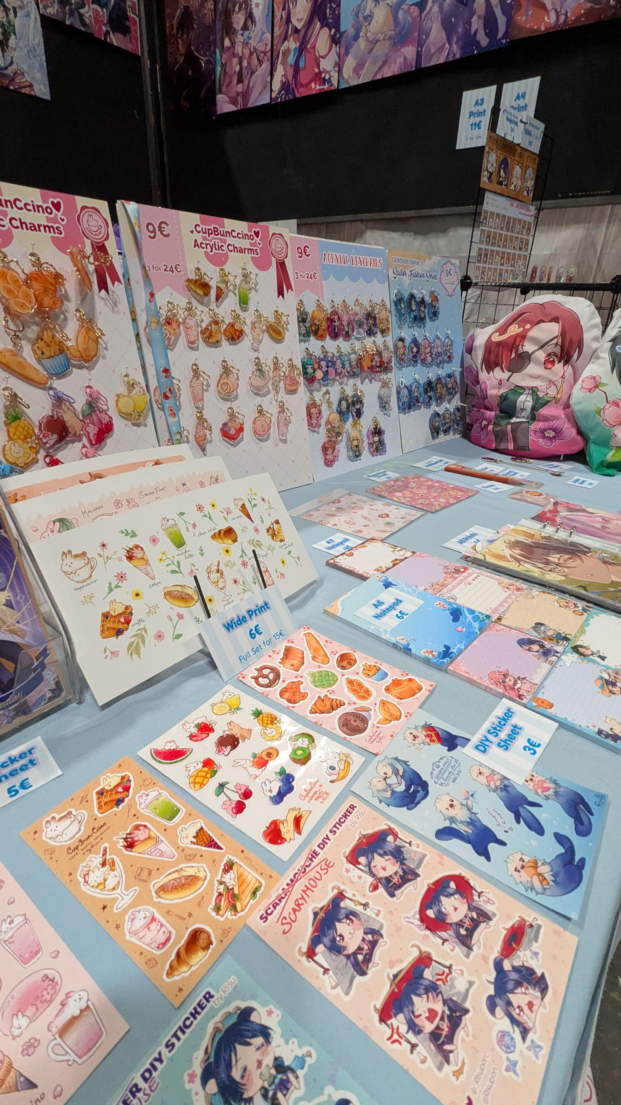 Miscellaneous MerchandiseA selection of different merchandise I have had experience with, including washi tape, acrylic standees, stickers and sticker sheets, 3D printed jewelry, stationery, metal works and more.Commercial works with other companies also include packaging design, plushies production & print file preparation.