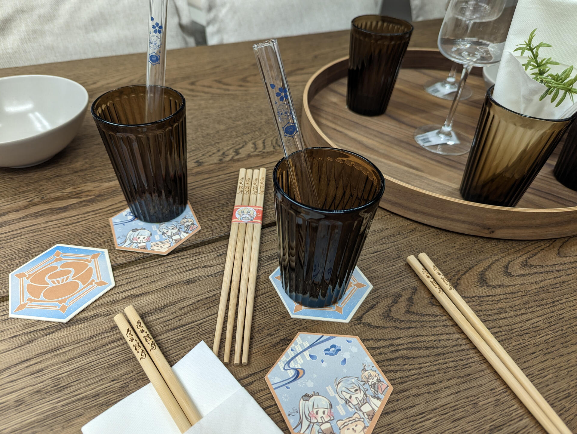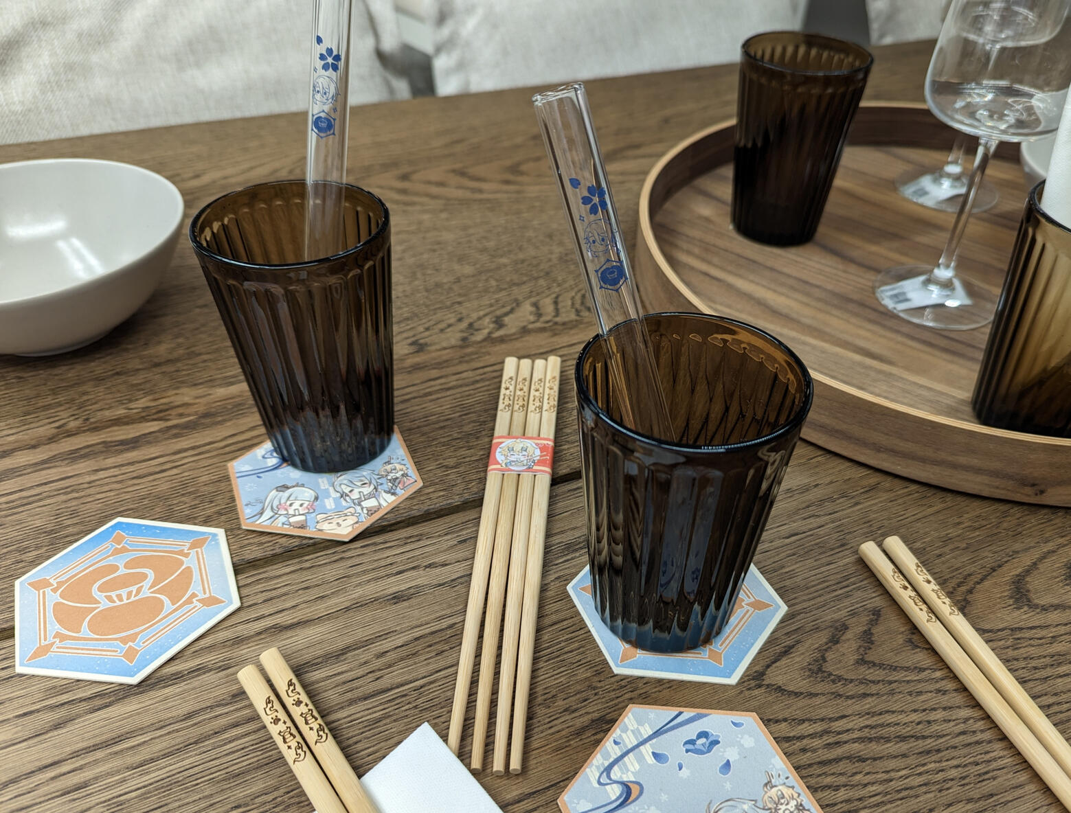 Kamisato KitchenA series of Genshin Impact inspired kitchenware merchandise that originally started for the Ayato boba straws only but it got out of hand really quickly. It now is a range of kitchenware including drinking glasses, chopsticks, coasters, mugs and might get additions in the future.