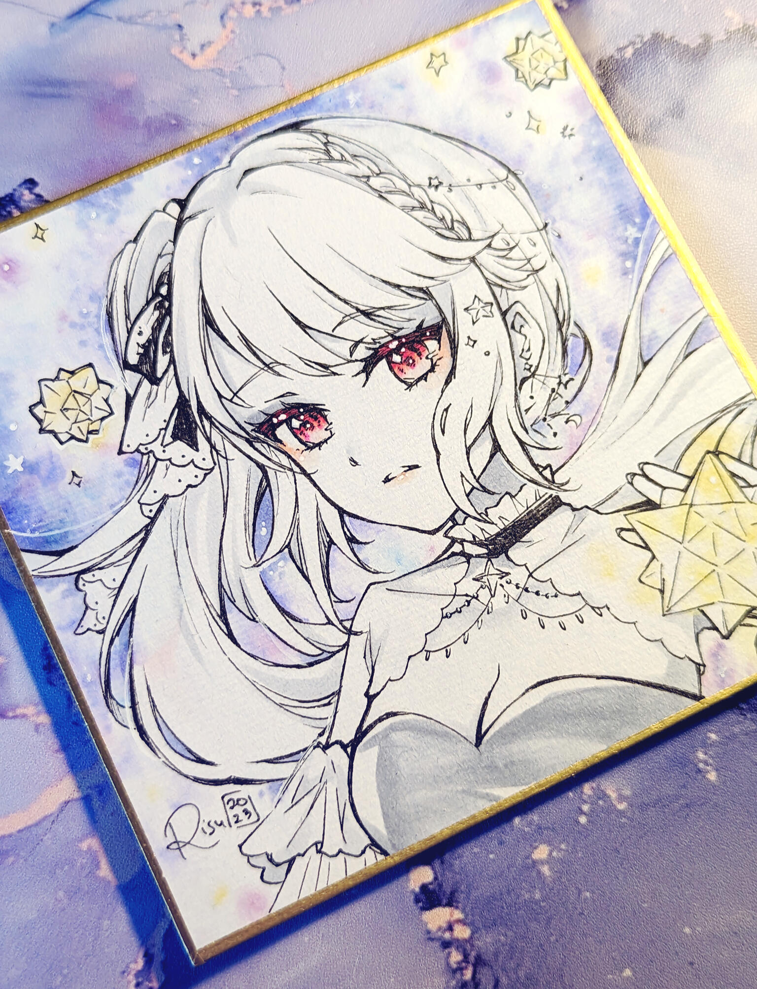 Full colour with watercolours - 100€+Real shikishi boards 118x188m - +10€SPECIAL OFFER - Big shikishi board 243x273mm - 160€+ (Bustshot included)Bustshot instead of headshot upgrade: + 30% of the price!