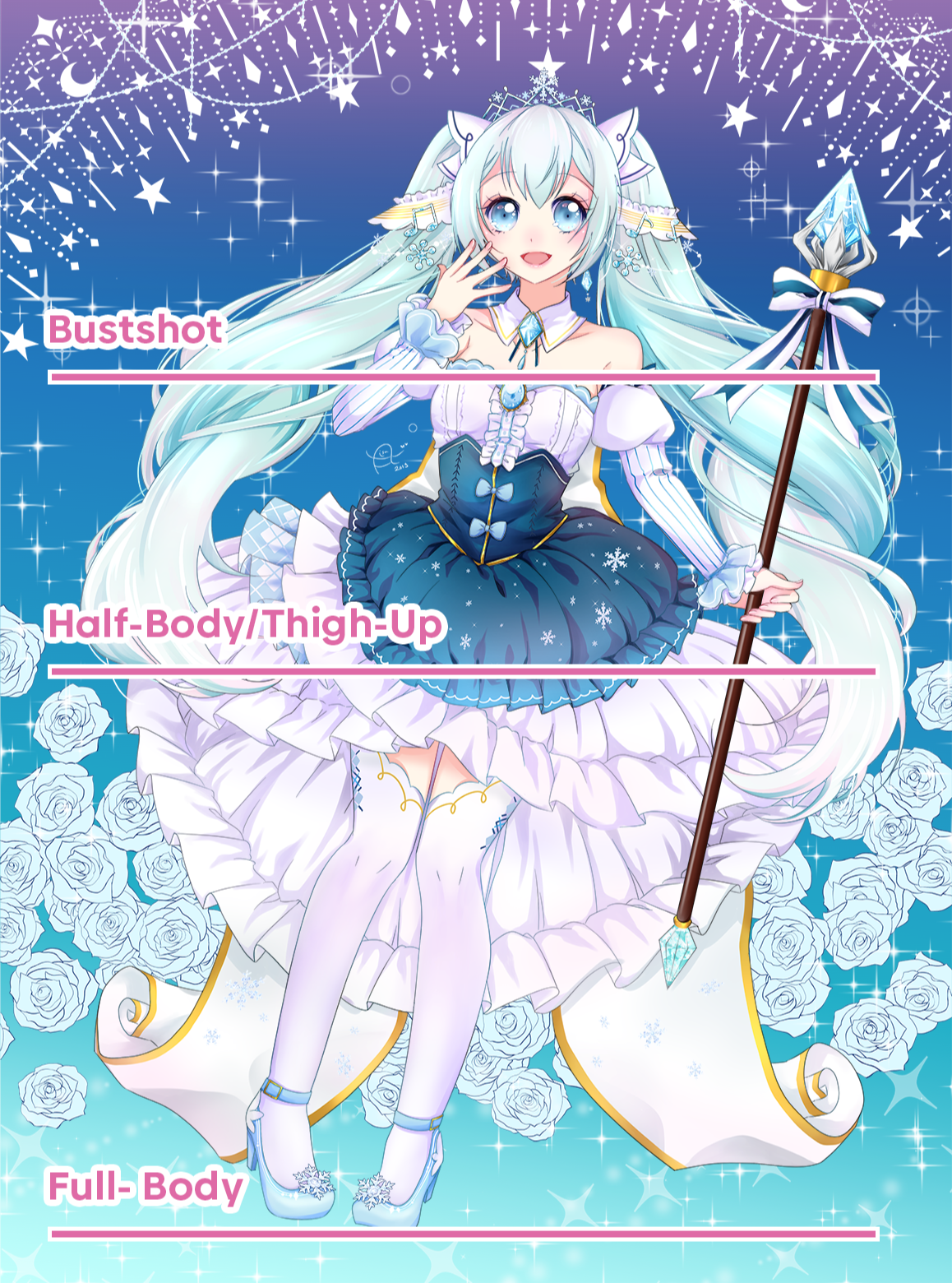 Full-Body - 90€+Coloured accents are free!Full Renders:Bustshot - 150€+