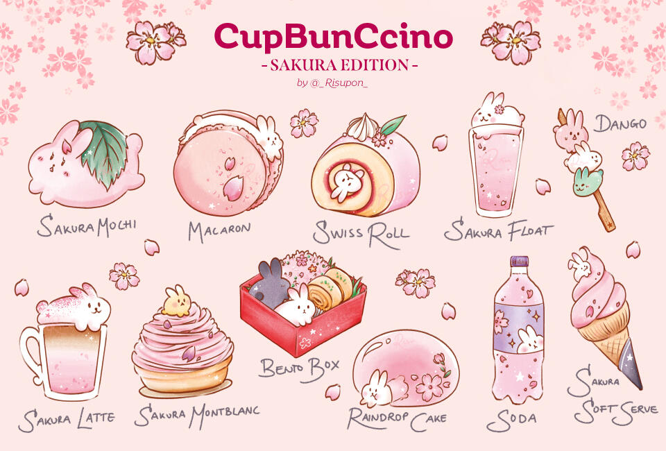 Original Art: CupBunCcino Sakura SeriesSecond merchandise series of my original 'CupBunCcino' lineSakura (Cherry Blossom) Food inspired dishes with parts of the dishes being bunny shaped or decorated