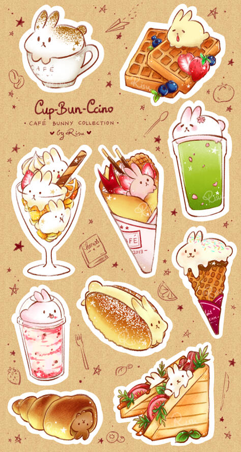 Original Art: CupBunCcino Café Food SeriesVery first designs of my own merchandise series 'CupBunCcino'Café & Bistro Food inspired dishes where dairy components of a dish take the shape of bunnies